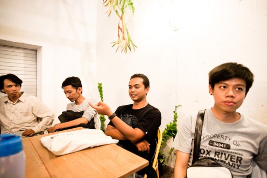 Selain itu, ada juga tantangan dari modal uang, yang mengatur kreatifitas kita. Sebagai contoh, saat ini kita sedang berada di butik ORE. Bagaimana kita bisa membedakan desain yang dibuat di Gubeng Kertajaya dengan desain yang dibuat di New York? Mungkin di Surabaya ancaman kita bukan FPI, tapi uang. Uang bisa membuat desain kaos, film, buku, semuanya menjadi sama. Ini perlu disikapi juga. Menurut Antariksa, salah satu contoh negosiasi yang baik antara seniman dan pihak komersial adalah mural yang dibuat di sepanjang Kalisosok. Mural yang dibuat oleh Obed Bima Wicandra—yang malam itu juga kebetulan hadir—ini menarik sebagai contoh sebagai pekerjaan yang dibiayai perusahaan komersial, tapi tetap mempertahankan kreatifitas dan idealisme dengan menceritakan budaya linting. Tidak vulgar sekedar “dodolan” Sampoerna.Mural, graffiti, memang hadir dalam budaya perlawanan. Tapi kemudian mural dikomodifikasikan, misalnya dengan pembuatan mural yang didanai XL. Yang perlu kita lakukan adalah mencari cara-cara negosiasi yang kreatif, di mana kita bisa menggunakan alat-alat ini untuk mencapai tujuan kita. Jadi kita tidak bisa sepenuhnya menolak kapitalisme dan komodifikasi. Ingat bahwa membuat mural dan graffiti mengkonsumsi juga peralatan-peralatan produksi kapitalisme yang tidak murah, dan tidak ramah lingkungan juga. Sepertinya kita perlu menjadualkan satu sesi presentasi bersama Mas Obed untuk menceritakan proses negosiasinya dalam pembuatan muralnya :).